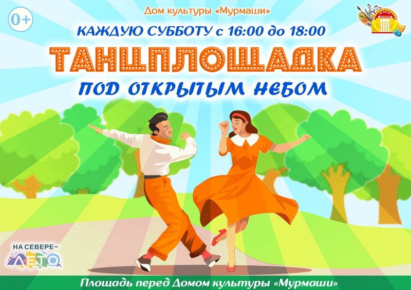 Каждую субботу с 16 до 18 часов, в течении всего лета, на площади Дома культуры «Мурмаши» вас ждёт Танцплощадка «Под открытым небом»!