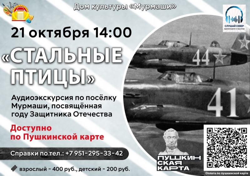 21 октября в 14:00 состоится аудиоэкскурсия «Стальные птицы» по посёлку Мурмаши, посвященная году Защитника отечества.