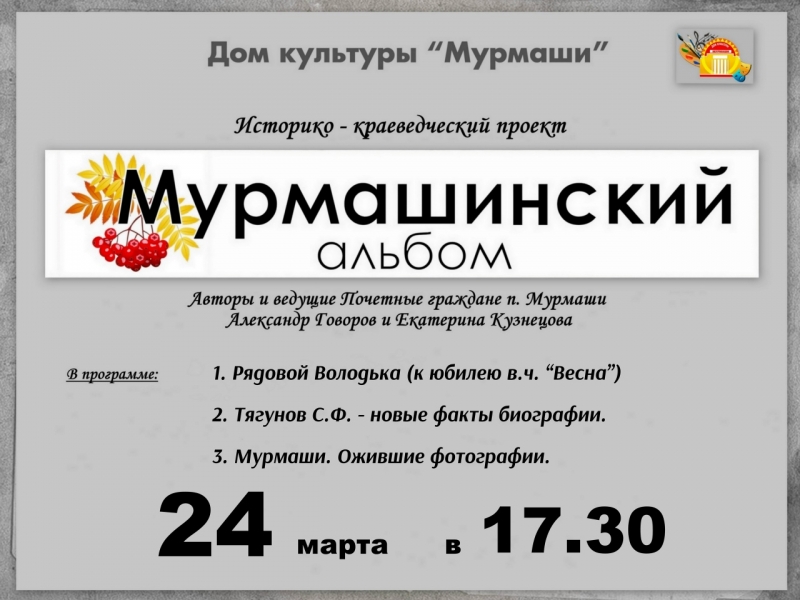 Краеведческий проект "Мурмашинский альбом". 24.03.2026 г.
