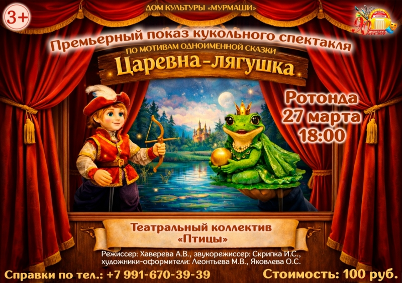 27 марта в 18:00 в ротонде Дома культуры «Мурмаши» пройдёт премьерный показ кукольного спектакля по мотивам одноимённой сказки «Царевна-лягушка»!
