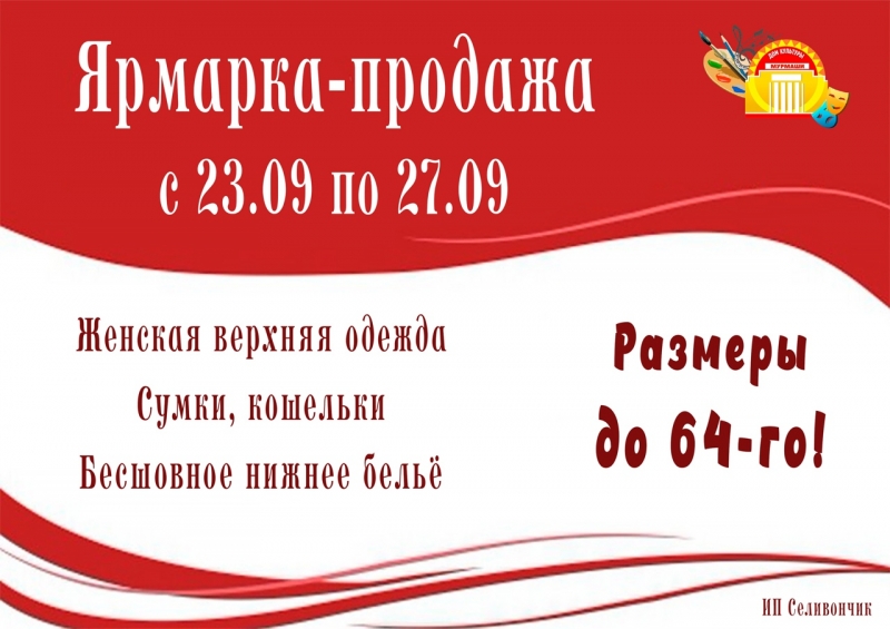 Не упустите возможность приобрести качественные и красивые вещи по выгодным ценам! Ждём вас с 23 по 27 сентября на нашей ярмарке-продаже!